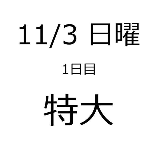 11/3 日曜 1日目 机貸し 長机半分+椅子 2脚 ※出展者パス 2枚 団体名を入力の上、部屋を選択してください。